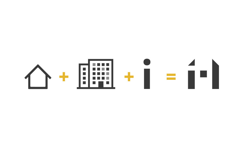 Conceito criado a partir da junção da forma de edifícios com a inicial do nome da marca.