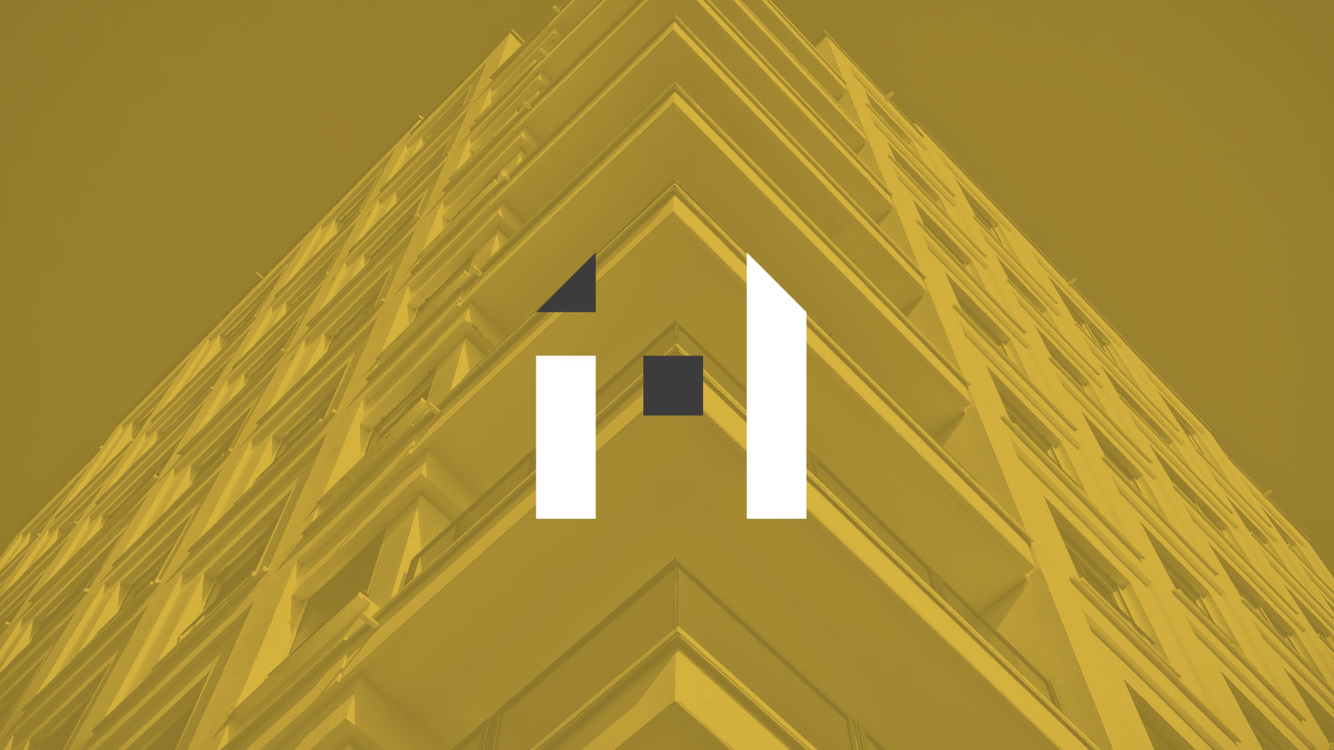 Conceito criado a partir da junção da forma de edifícios com a inicial do nome da marca.